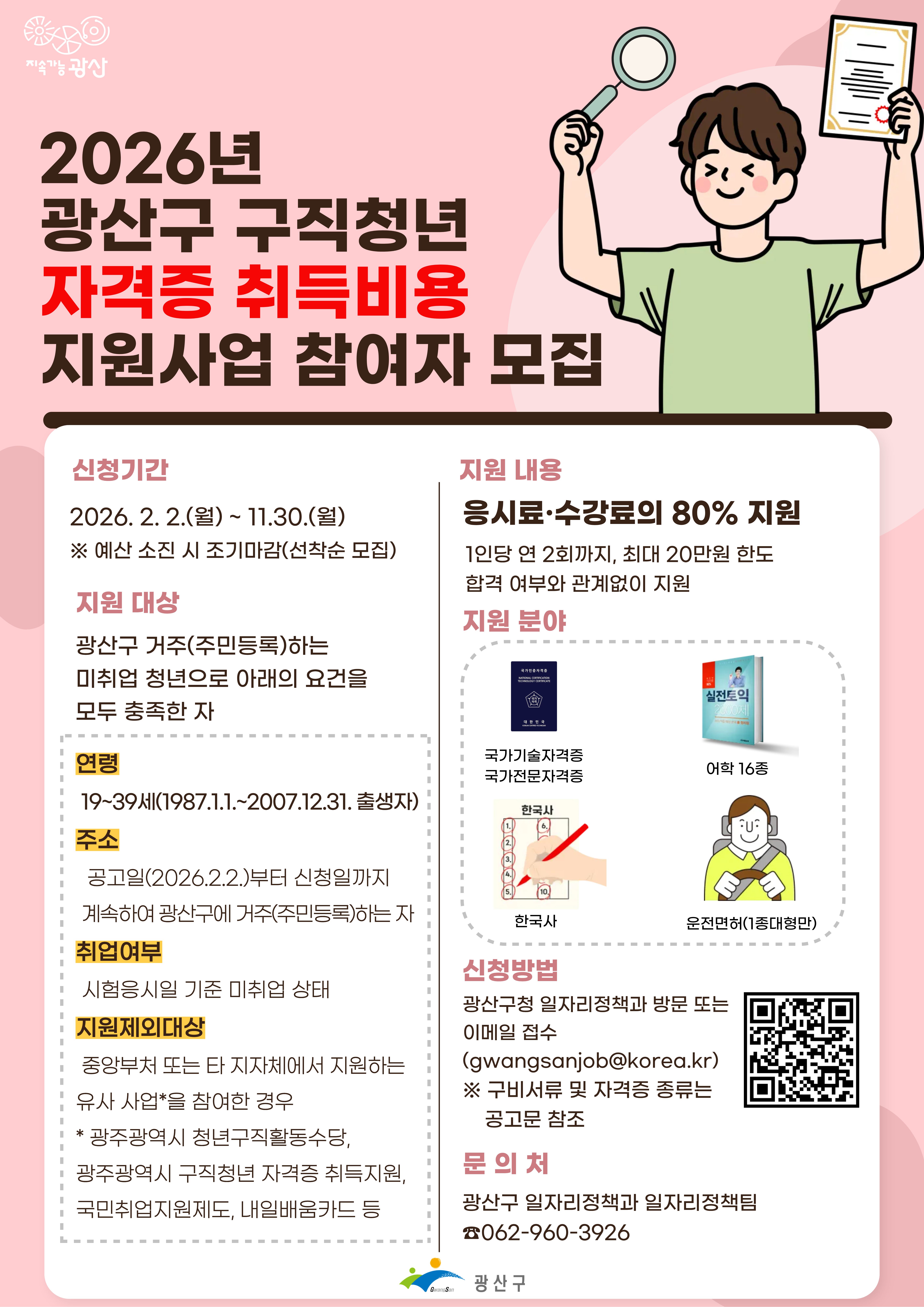 [광산구] 2026년 구직청년 자격증 취득비용 지원사업 참여자 모집