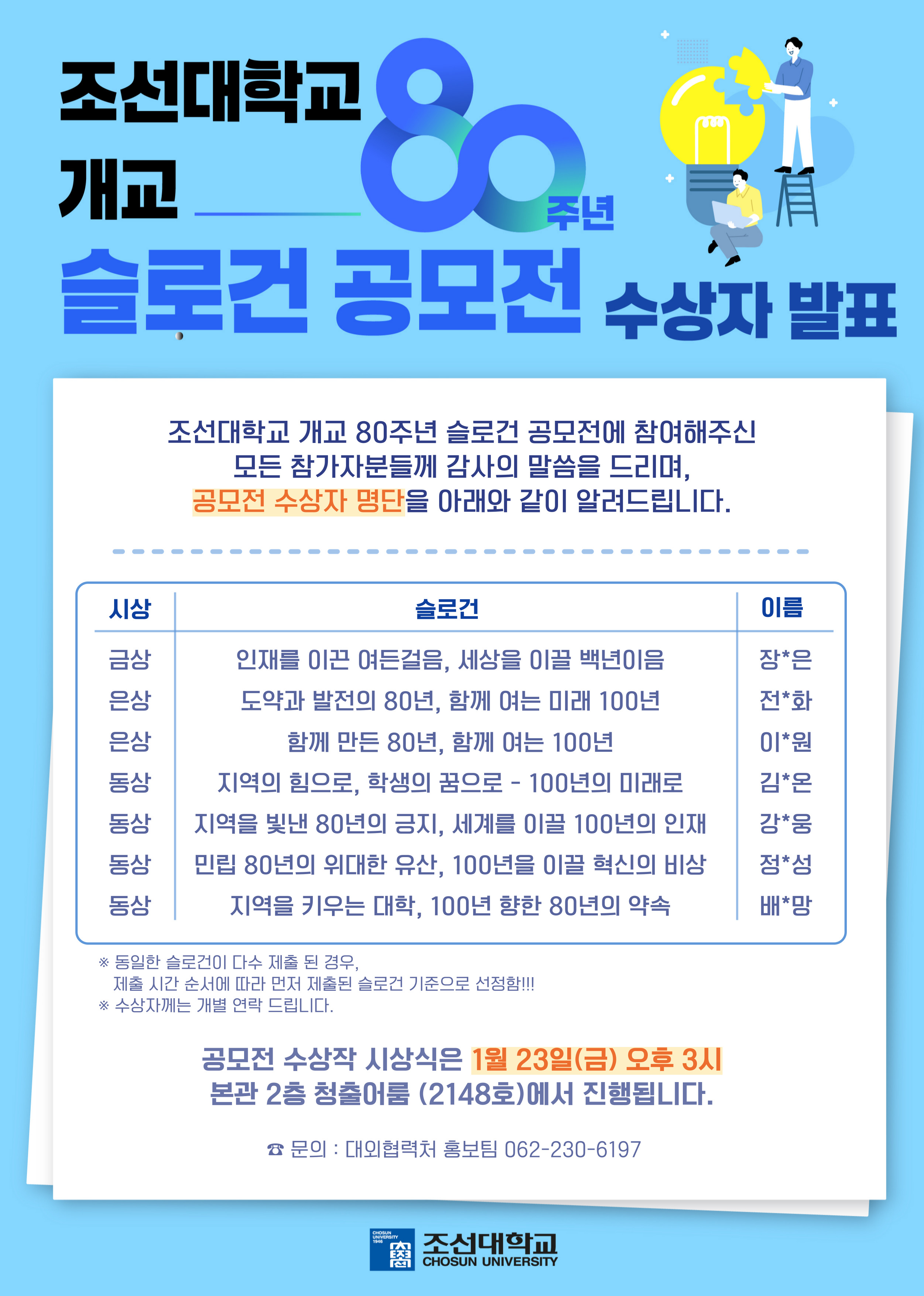 [대외협력처] 개교 80주년 슬로건 공모전 수상자 발표