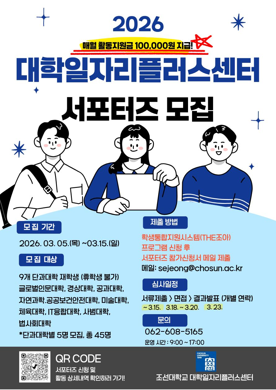 [조선대학교 대학일자리플러스센터 홍보 서포터즈 모집]