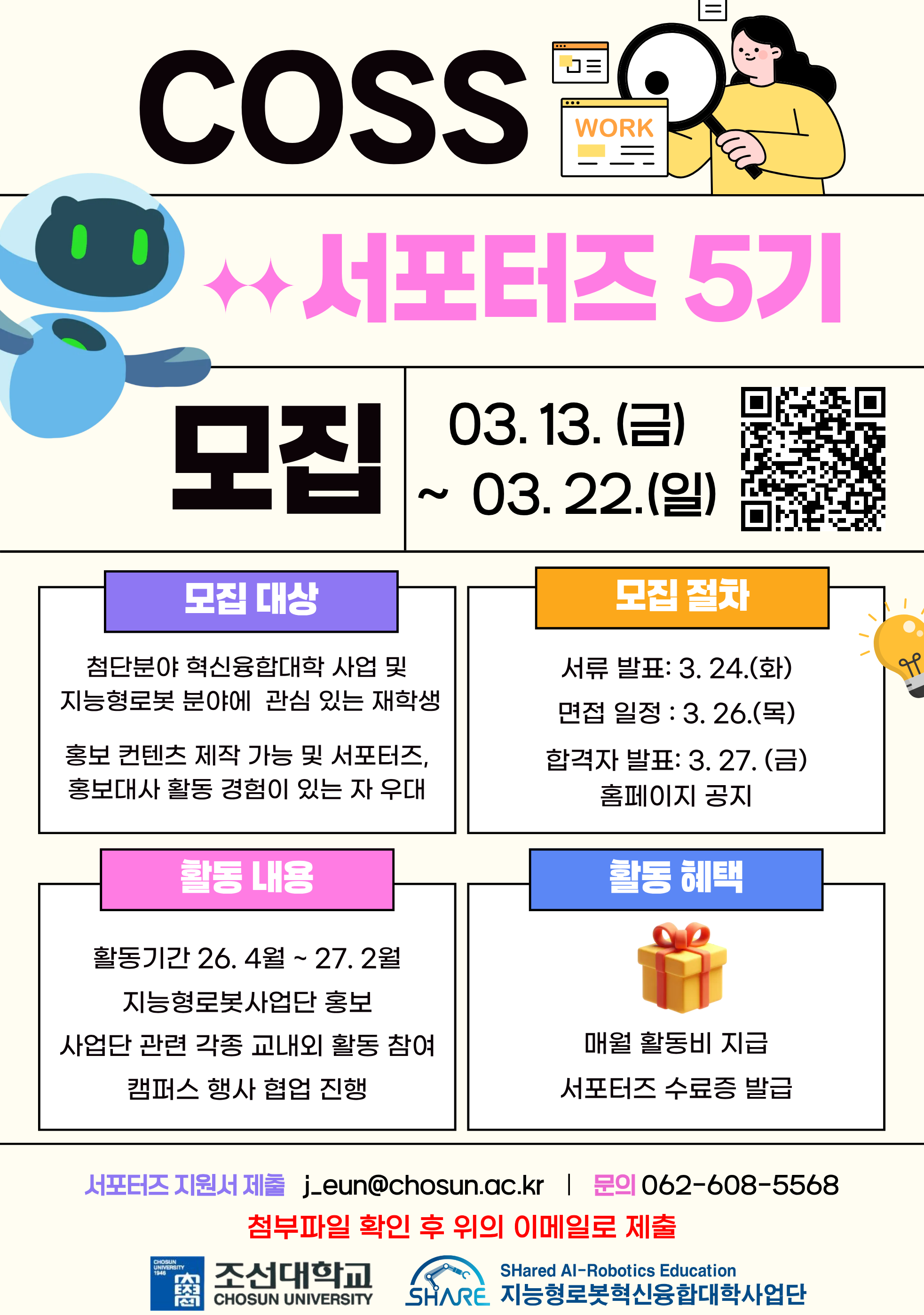 [지능형로봇사업단] 2026학년도 지능형로봇혁신융합대학사업단 COSS 서포터즈 5기 모집
