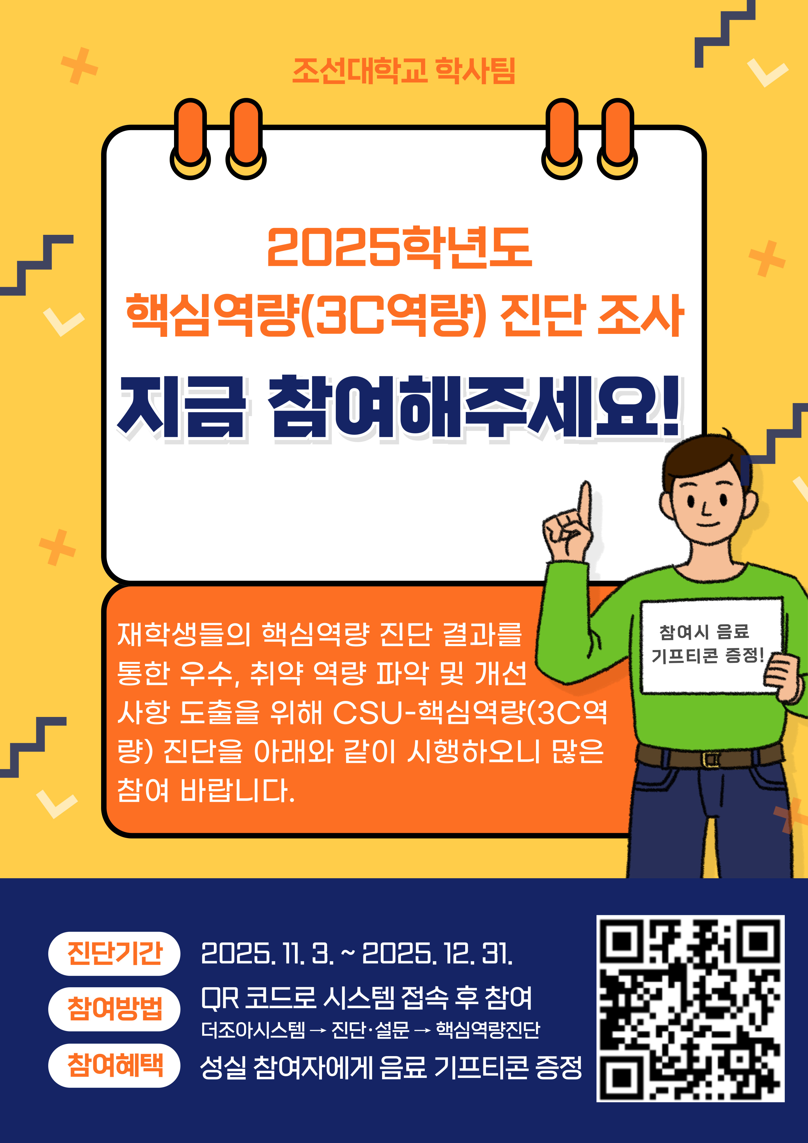 [학사팀] 2025학년도 CSU-핵심역량(3C역량) 진단 조사 안내(참여자 음료 기프티콘 증정)