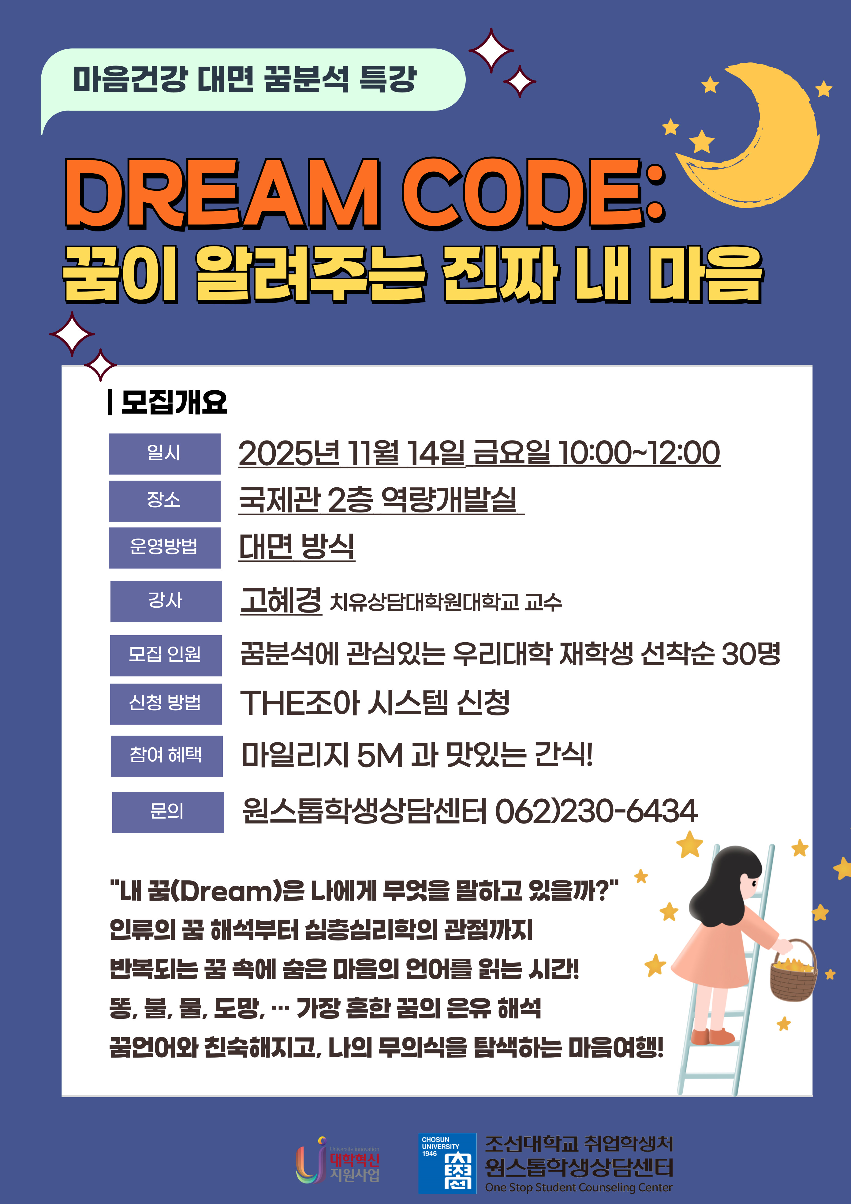 [원스톱학생상담센터] 마음건강 특강'DREAM CODE: 꿈이 알려주는 진짜 내 마음' 참여자 모집