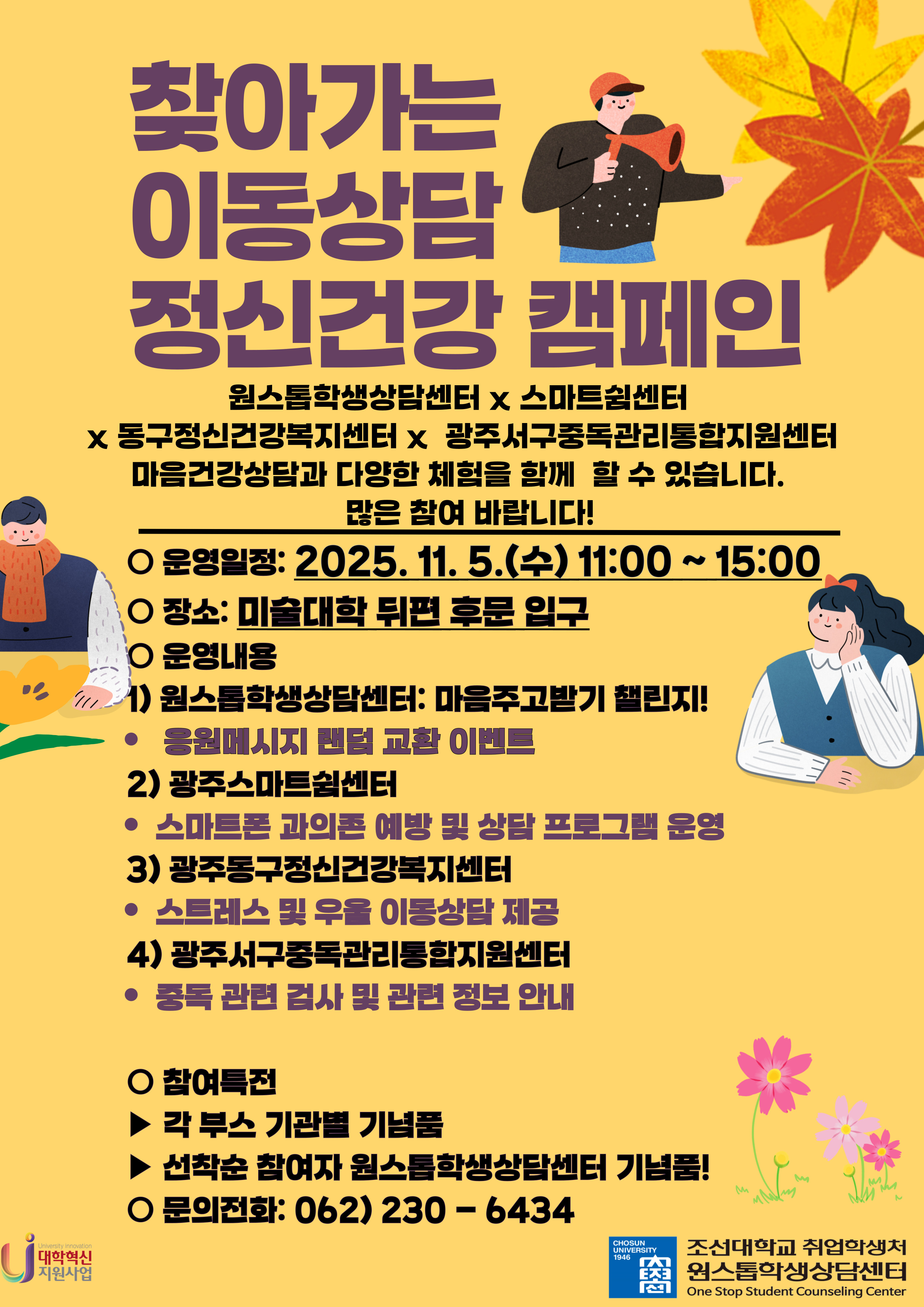 [원스톱학생상담센터] 찾아가는 이동상담 정신건강 캠페인 안내