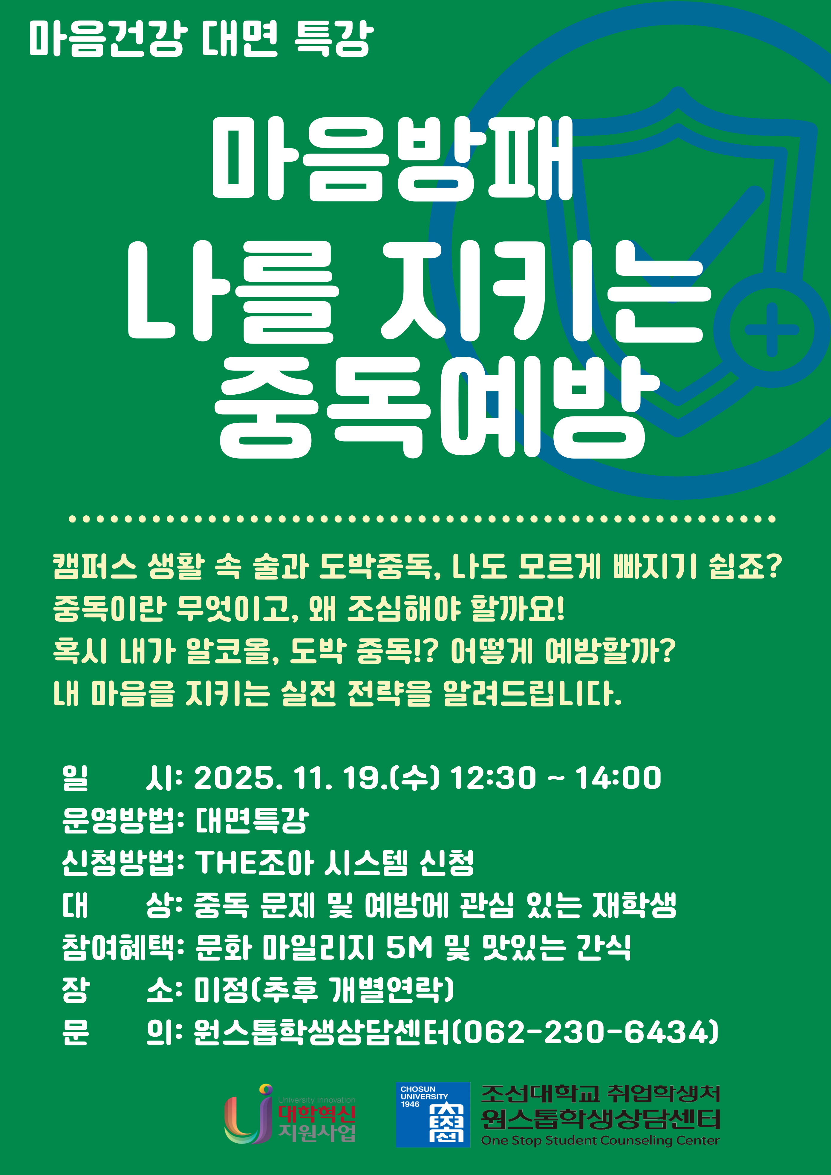 [원스톱학생상담센터] 마음건강 특강 '마음방패, 나를 지키는 중독예방' 특강 참여자 모집