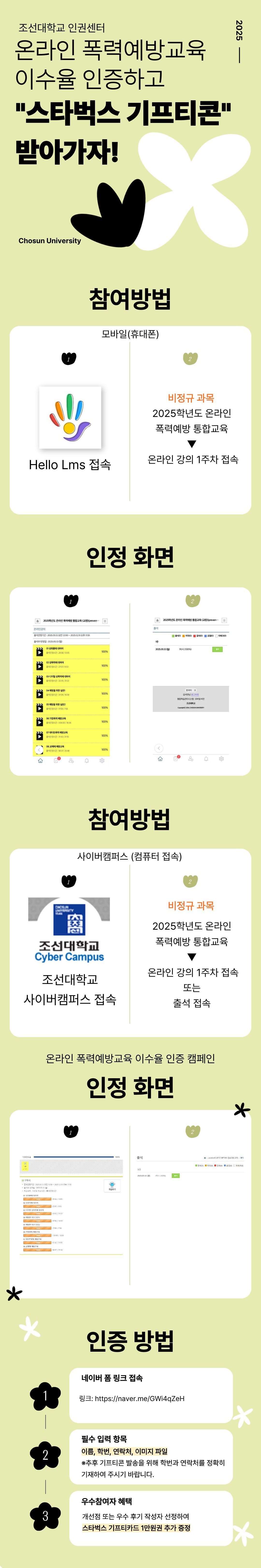 [인권센터] 온라인 폭력예방교육 이수율 인증 캠페인 참여하고 스타벅스 기프티콘 받아가자!!