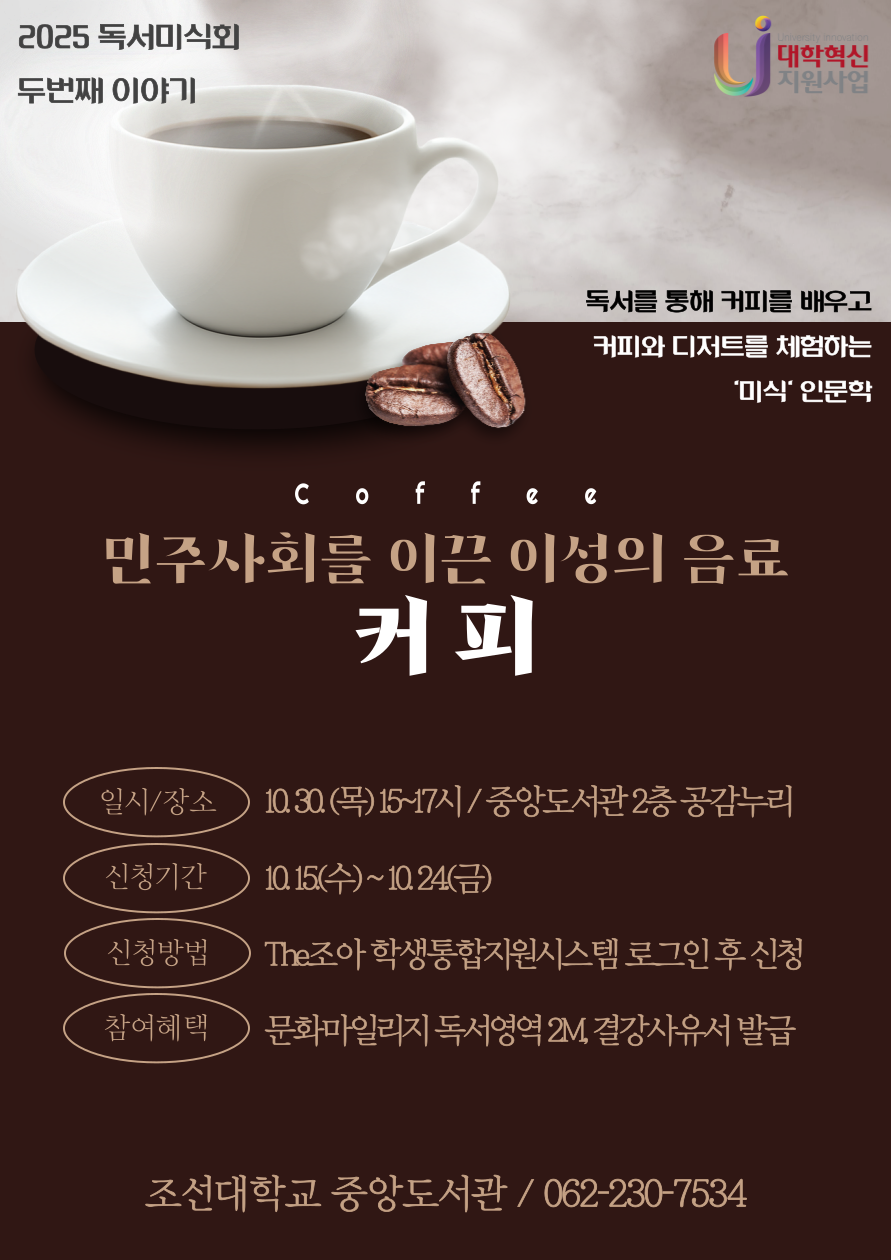 [대학혁신지원사업] 2025 독서미식회(2회) "민주사회를 이끈 이성의 음료, 커피" 행사 안내