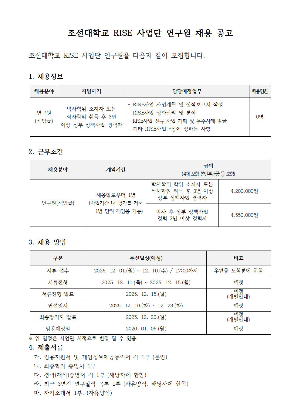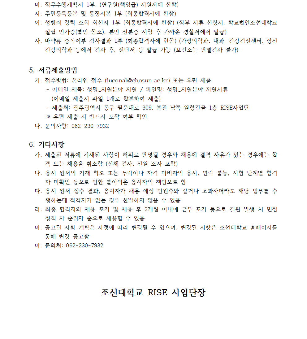 완료 [RISE사업단] 조선대학교 RISE사업단 연구원 채용 공고