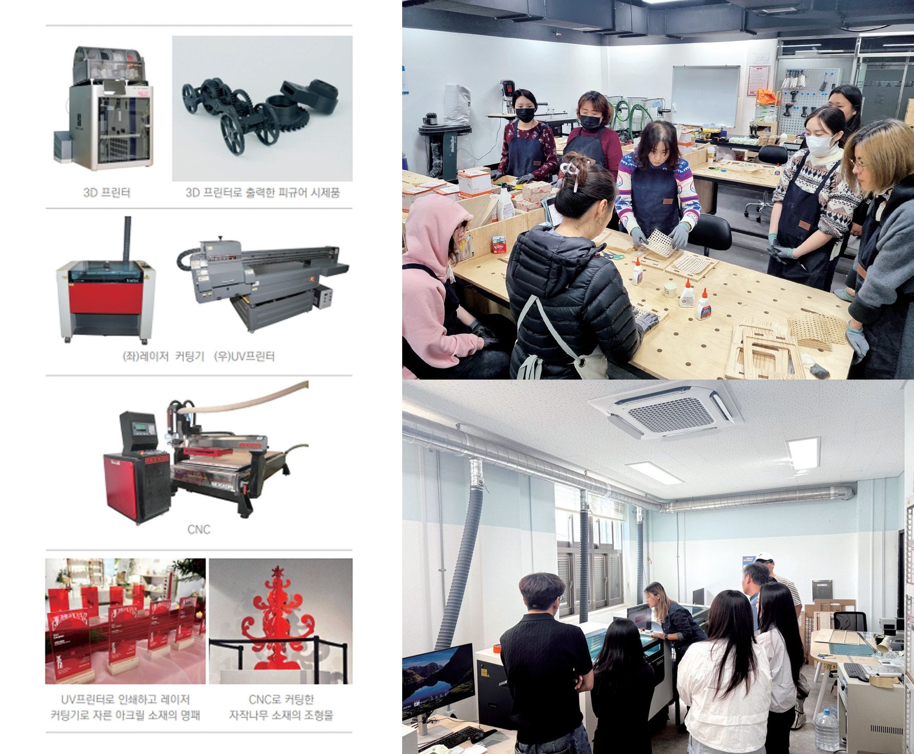 이를 위해 체계적인 교육 프로그램도 운영 중이다. 매월 원데이 클래스 형식으로 진행되는 ‘창업융합교육’은 장비 체험과 간단한 소품 제작을 중심으로 구성되어 메이커 스페이스 입문자에게 적합하다. 보다 전문적인 역량을 기르고 싶은 이용자를 위한 ‘인스트럭터 양성 교육’은 장비 및 소프트웨어 활용, 관련 자격증 과정 등 심화 교육이 제공된다. 또한 예비 창업자와 초기 창업자를 대상으로 한 ‘창업자 역량강화 교육’을 통해 사업계획서 작성, 크라우드 펀딩 등 실무 중심의 창업 교육도 함께 이루어진다.